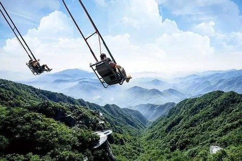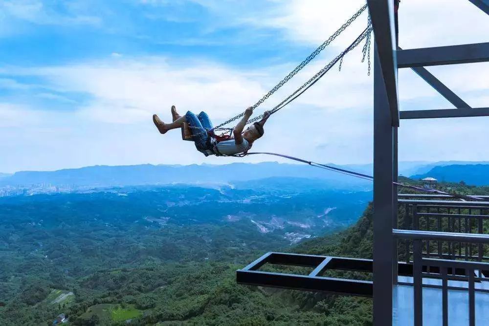 悬崖落差1100米,体验“命悬一线”的高空刺激快感。分为4个不同刺激等级的秋千,总有一款适合你。随时能听到尖叫声,然而安全措施的非常的好的!只需要你自己克服自己的恐惧,就能感受像风一样的自由!