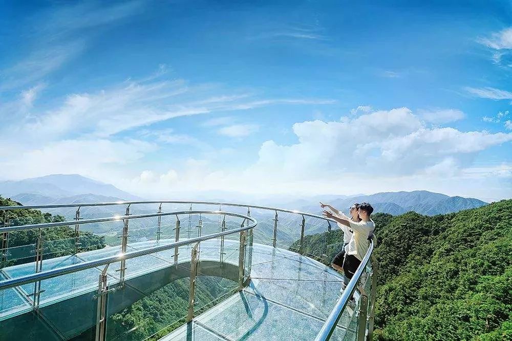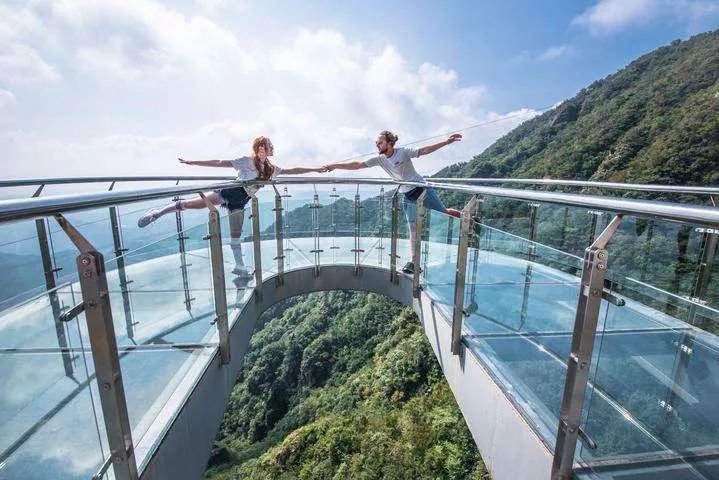 它悬于山腰、落差百米崖壁之上,乍一看像重庆网红奥陶纪的天空悬廊,其实这只是自拍打卡点,景区有奥陶纪版天空之阶;外延80.9米,计划建成华东第一的5D玻璃桥!