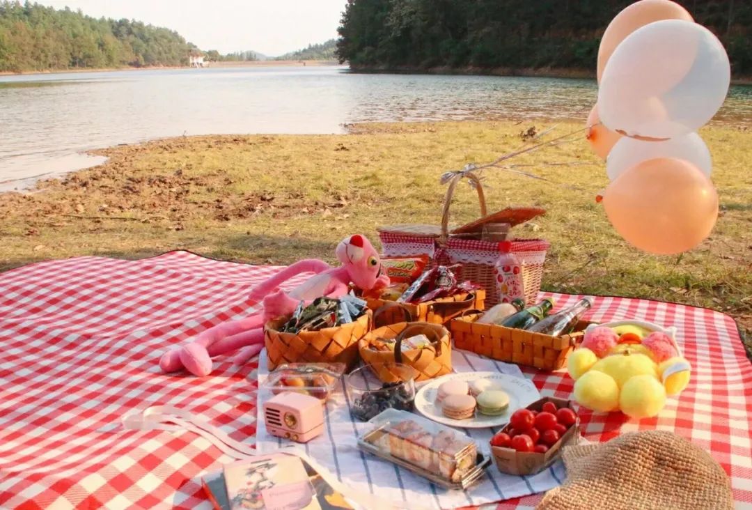 12:00 午餐,铺开地垫,拿出食物,我们在蓝天白云碧水之间,开展一场山林野餐活动,美食、美景、美人,一定非常有趣。适时登顶娘娘山,不想登顶的也可以选择在湖边闲逛。