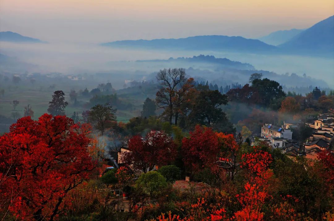 12:00 集合前往【卢村】,车程约1.5H。卢村美景以秋色最为出名,每年11月中旬到12月上旬,是卢村最美的时节。村外田间有一排红枫树,每到深秋,枫树叶由绿变黄,再由黄变红,映着皖南民居,宛如仙境。