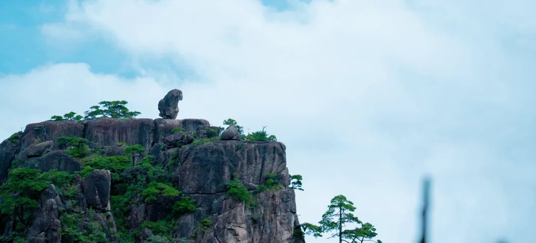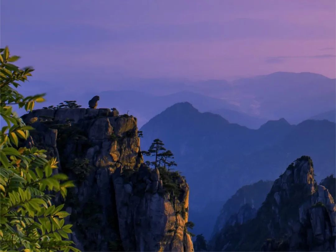 自狮子峰清凉台顶北望,可见一石猴蹲坐峰顶,静观云海起伏
